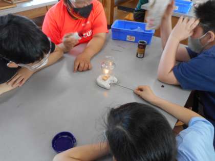 ろうそくが燃えている時の,線香の煙の動きを確認しました。