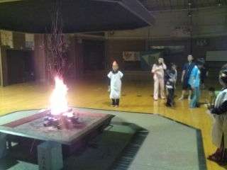 火の神様から,大切な火をもらい,聖火隊が牧に移して大きな火にします。