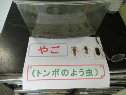 昨日,プール清掃をした際,生息していた「やご」を子どもたちと一緒に救出しました。こまままでは,排水される水と一緒に流されてしまうので,見つけた「やご」を水槽で飼育することにしました。うまく「とんぼ」に羽化すればいいですね。