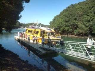いよいよみさきの家を離れます。みさきの家の施設のひとつ”なかよし港”から,船に乗って,マリンランドのある賢島港へ向かいます。海上では,行き違う船と挨拶を交わしたり,真珠貝の養殖いかだを見たりします。