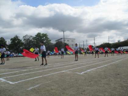 5年生と6年生の団体演技「ULTRA FLAG」の様子です。さすが高学年の演技でした。フラックの演技は,今年初めてでしたが,とても迫力がありました。