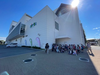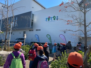 3年生の社会見学の様子です。学校を出発して歩いて「さすてな京都」に向かいました。早く着いたのでビオトープを見学しました。