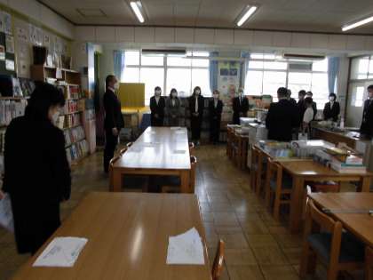次に教職員着任式がありました。新着の教職員から一人ずつ全校児童に挨拶をさせていただきました。
