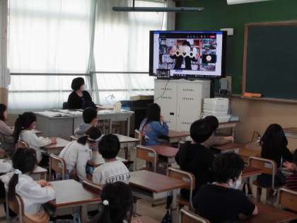 オンライン形式で,各教室をつないで年度初めの儀式を行いました。はじめに本年度新しく着任した教頭先生の管理職着任式を行いました。教頭先生から,自然いっぱいの横大路小学校で,さらに素敵な学校になるように全教職員で精一杯がんばっていきたいというお話がありました。