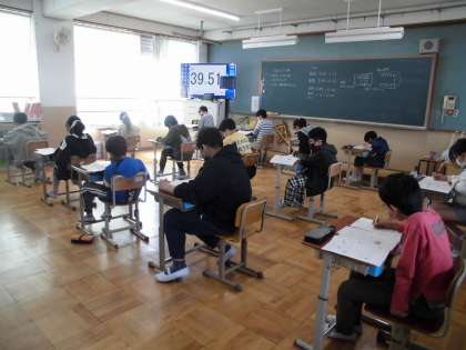 国語・算数・理科・質問紙が実施され,午前中6年生38名が最後まで集中して,実施調査に取り組んでいました。結果が返却されたらしっかりと復習してほしいと思います。
