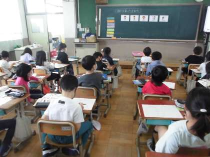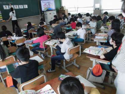 3年生では「Let's Try!1」の教材を使って,コミュニケーション活動を中心に学習をしています。最初の時間は,世界の国の「こんにちわ」を知ったり,今の気持ちを伝えたりしました。
