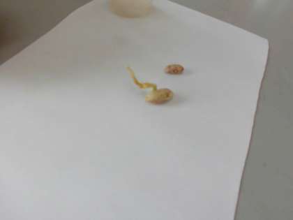 前回の授業で水をいれたインゲン豆と入れていないインゲン豆…