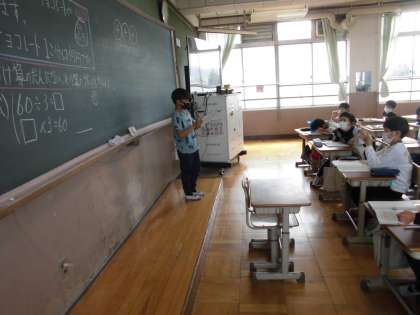 わり算の学習もまとめの時期に入りました。かけ算の段に答えのないわり算の問題をどう考えるのかを発表しました。友だちの発表をよく聞いて考えていました。