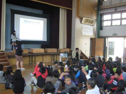 11月9日(水),児童集会で図書委員会が発表しました。図書室の使い方,読書ラリーの結果,学年の図書の貸し出し数,人気の本の紹介など,プロジェクターを使って分かりやすく伝えてくれました。その後,校長先生から表彰状の授与がありました。