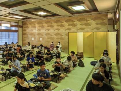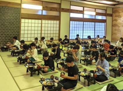 コロナ対策で全員前を向いての食事ですが,それでもみんなで食べる夕食は格別です。