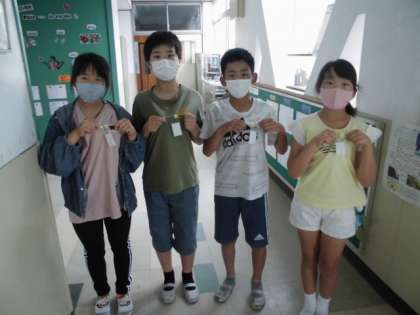 6年生の代表の児童が受け取りました。全学年には月曜日に配付します。
