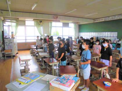 夏休みも終わり、これから2学期のスタートです。元気に3年生の子どもたちが登校してくれました。始業式はオンラインで行いました。