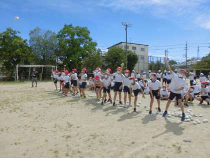 今日の体育は,5・6年合同で玉入れの練習をしました。昨年度までの玉入れのやり方ではない方法でしました。初めてしましたがとても頑張りながら楽しんでいる様子でした。