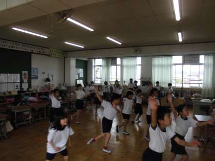 暑い日が続いていますがダンスの練習をしています。換気をして互いに距離を取り、グループに分けて頑張っています。