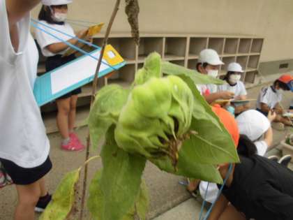 春から育てていたヒマワリも花が咲き、だんだんしおれてきました。子どもたちは花の咲いた後が重たくなっているところに気づいている様子でした。