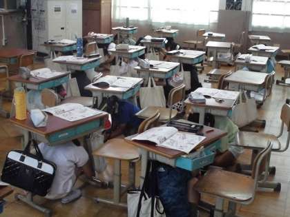 9月9日(金)に、授業参観及び引き渡し訓練を行いました。防災に関わる学習を参観していただきました。今回は、学校で地震が起こった時のことを想定して、それぞれの場所でどのような行動をとればよいかを考えました。その後、シェイクアウト訓練を行い、「まず低く」「頭をまもり「動かない」を実践しました。すばやく机の下に身を隠す子どもたちの様子が見られました。この機会に、台風や地震・大雨などの災害の時にご家庭でどう行動するのかについて話し合う機会にしていただければありがたいです。たくさんの保護者の方にご参加いただきまして、ありがとうございました。