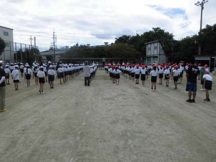 開会式・入退場のあと、綱引き・ロング玉入れなどを行い、最後にみんなで草引きをしました。第2回全校練習は、9月29日(木)を予定しています。