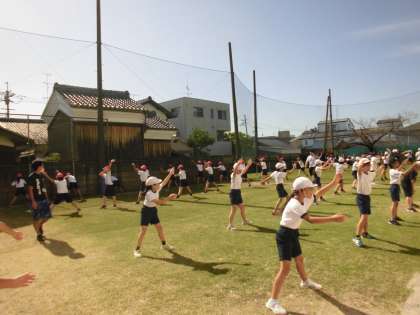 5・6年生で団体演技の練習をしました。みんな一生懸命踊っていて運動会が楽しみです。