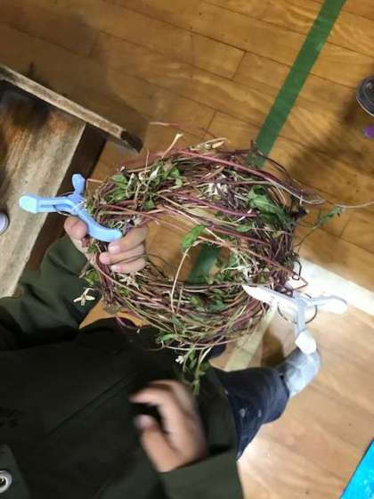 アサガオのツルを使ってリースを作りました。