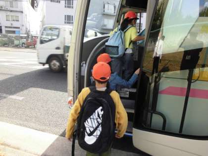 3年生になって,初めての社会見学です。バスに乗って出発しました。