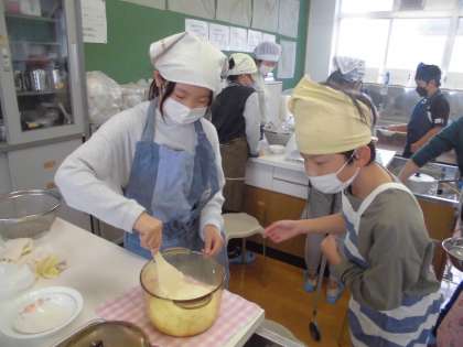 米がたけたあと,蓋をあけると…「うわ〜!!」と歓声があがりました!自分たちで作ったものをとてもおいしかったようで,いい笑顔を見ることができました。
