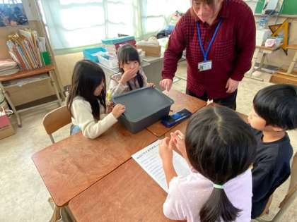 ブラックボックスに入った野菜の見た目やにおい、味や使う料理などを考え、クイズを作りました。