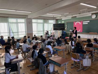 歯科衛生士さんから、1年生はむし歯にならない、正しい歯みがきの仕方を教えていただきました。たくさん出てくる手作りの教材に引き込まれ、しっかり学習できました。