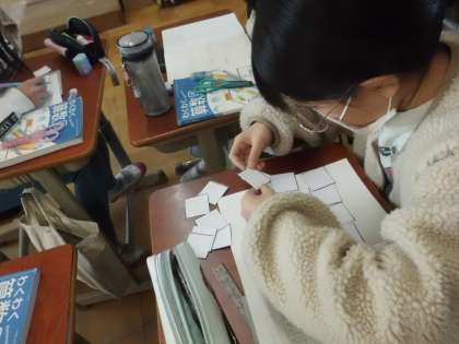 5年生の算数科の学習で資料を表にして,どのように変化しているかを調べました。調べて分かったことや気付いたことを交流しました。いろいろなきまりを見つけることができました。