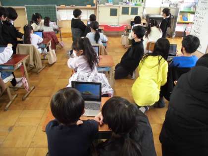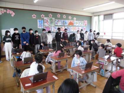 1年生にタイブレットの使い方をお手伝いしに行きました。1年生に優しく声をかけながら一緒に活動しました。卒業まであと少しです。6年生として、みんなのためにできることをしていきたいです。