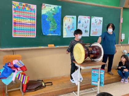 ゲストティーチャーを招いて、韓国朝鮮について学びました。チャンゴという太鼓に挑戦しました。