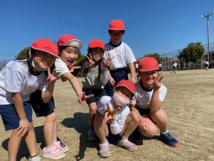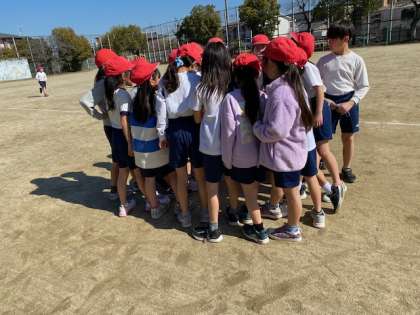 みんな遊びをしました。輪になって鬼を決めて、おにごっこを楽しみました。楽しそうです。