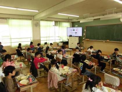 子どもたちは3時間目くらいから「お腹すいた〜」「今日の給食は何かな?」と楽しみにしていました。