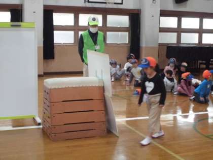 4月19日(水)の5時間目に伏見警察署や地域の交通安全推進委員会の方々のご協力のもと、1年生の交通安全教室を実施しました。歩道の歩き方や横断歩道の渡り方、雨天時にかさをさす時の注意点などを教わりました。みんな真剣に聞いて、しっかり行動にうつせていました。