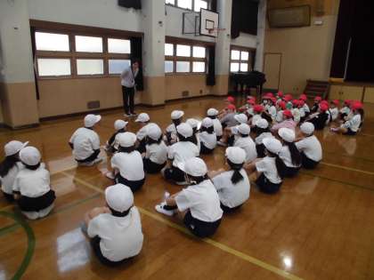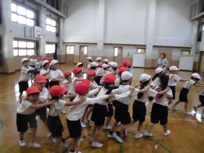 1・2年生で「じゃんけん列車」と「猛獣狩り」で遊びました。