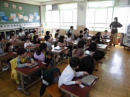 6年生のお兄さんお姉さんがキーボードの入力の仕方を優しく教えてくれたので、1年生は自分で入力できるようになって喜んでいました。