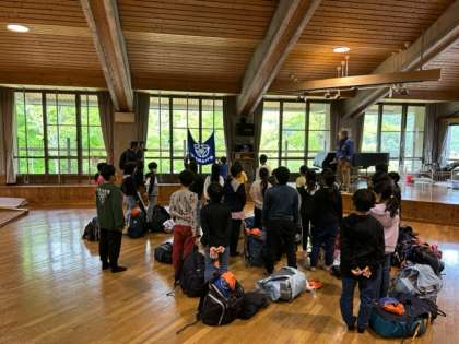雨がぱらついていたので、オリテホールで入所式をしました。