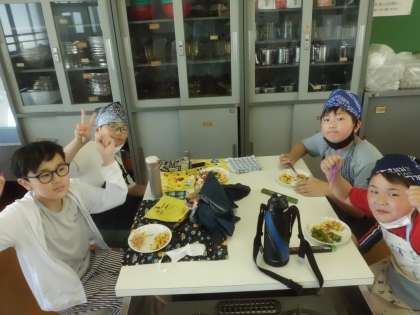 調理した後はおいしくいただきました。後片付けも協力してきっちりすることが