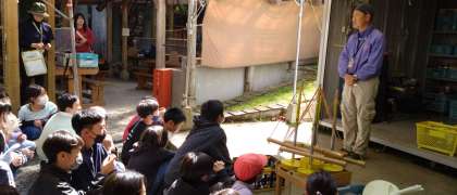 所員さんの話をしっかり聞いています。