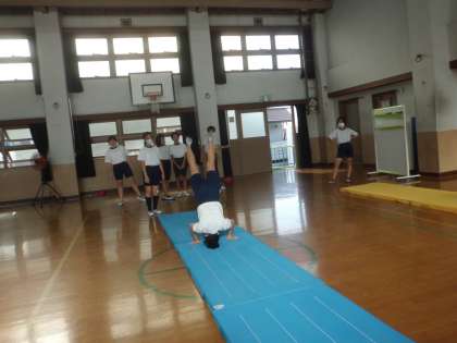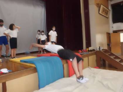 今年もマット運動の学習が始まりました。久しぶりのマットでしたが活発にいろんな技にチャレンジしていました。片付けも協力してする姿がとてもよかったです。