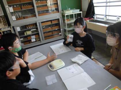 理科で「もののとけ方」の学習をしています。水に食塩などをとかし実験を進めていきます。これからも理科室でも約束を守り、安全に気を付けて実験してほしいです。