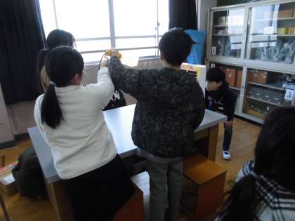 京セラグループ環境・エネルギー出前授業で,「今、地球で何が起こっている?」という内容の学習をしました。1・2学期に取り組んだエコライフチャレンジ学習の内容とも重なる部分が多く、理解が深まりました。お話を聞いたあと、持続可能な取組の一つである太陽光発電を実際にしました。光を当てると電気が作れ、それを使って電気製品が動いていることを確かめることができました。