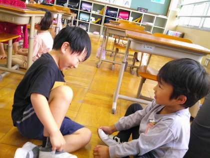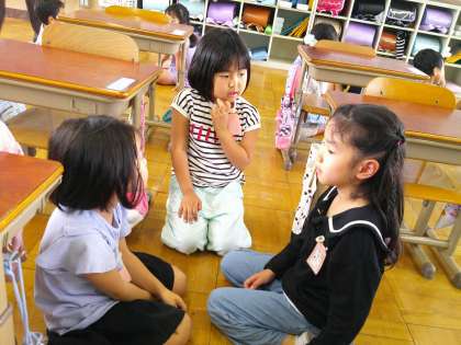 国語科「よくきいて はなそう」では好きな遊びや好きなお菓子、最近行って楽しかったこと、などのお題をきっかけに会話をつなげていく学習をしました。話し始めると会話が弾み、「もうちょっとお話したかった。」「お話の途中だった。」といつまででも話ていたそうな様子でした。