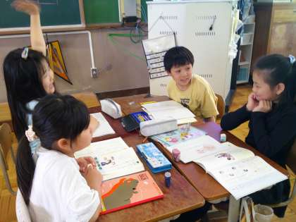 友だちのことを知るために、グループになって話を聞き合いました。一人ずつ、「自分が大切にしているもの」や「自分のすきなこと」などについて話しました。聞く人は、どんな質問をすると、友だちからたくさんの話を引き出すことができるか考えながら、話を聞いたり、質問をしたりすることができました。