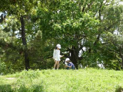 緑もたくさん広がっており、四つ葉探しをする子も。