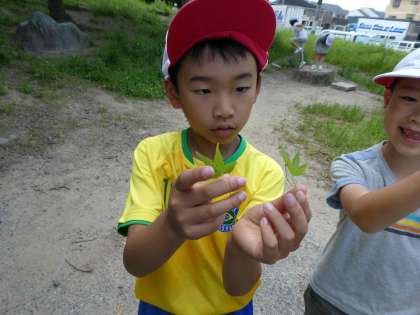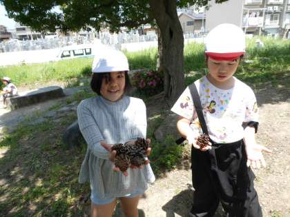 他にもドングリや松ぼっくり、まだ緑色のもみじの葉っぱを見つけてくる子も。