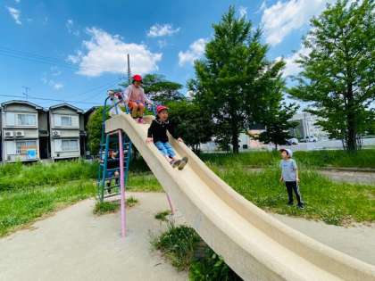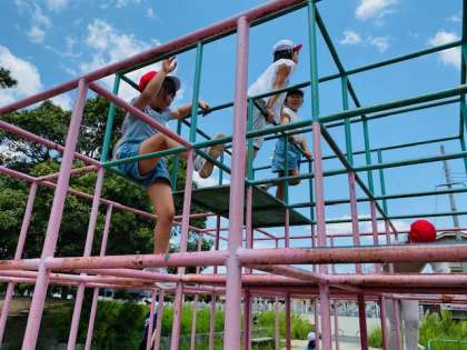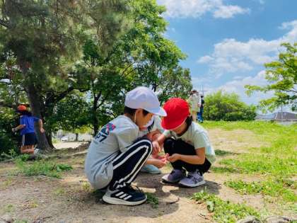 滑り台、ジャングルジム、虫探しの様子です。