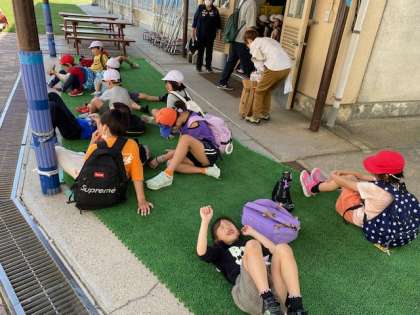 学校につく頃にはだいぶお疲れのようでした。今日はゆっくり休んでください。みんなよくがんばりました!