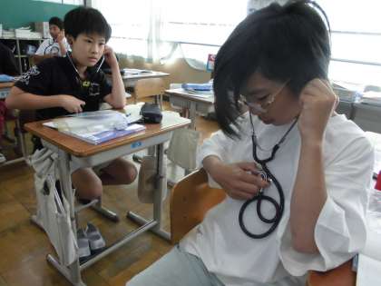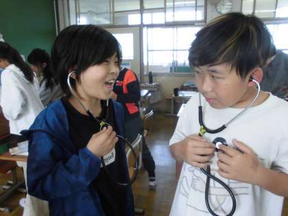 初めてのことで、子どもたちも不思議そうに自分の心音を聞いていました。