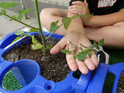 じっくり観察したことを文章に書いたので、今日は続きの学習で絵を描きました。目の前にミニトマトを構えて、色や形などをよく見ながら観察しました。