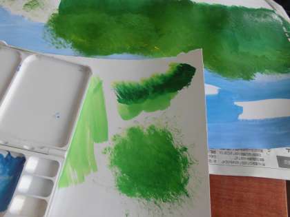 空の色などは少しは晴れの日を表してもいいよ!とか、今はお花が散ってしまったけど咲いているところでもいいよ!と本当にあったものならOKということで表すことにしました。